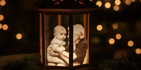 Imagine a beautiful, minimalist lantern that sits on your shelf as an elegant piece of art. But when you turn it on, something magical happens - your favorite photograph of a loved one, a cherished pet, or a special vacation moment appears, seemingly floating within the light.